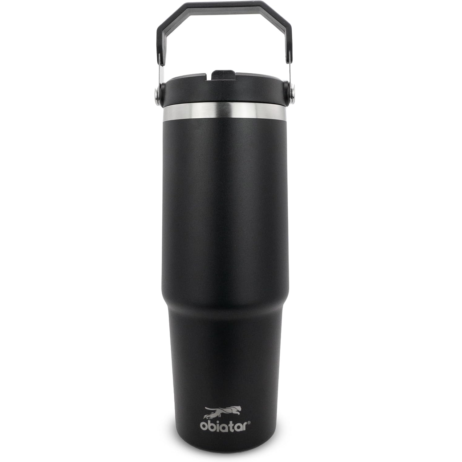 Stay hydrated in style with this premium 30 oz tumbler, featuring a convenient handle for easy carrying. Crafted from food-grade 18/8 stainless steel with double-wall vacuum insulation, this tumbler excels at maintaining your beverage's temperature, whether hot or cold. The practical design includes a flip straw lid for comfortable sipping and a movable soft handle for enhanced portability. The 100% leak-proof construction ensures worry-free transport in your bag or car. This versatile tumbler is perfect for daily use, from morning coffee runs to afternoon workouts or outdoor adventures. The durable construction and sleek finish make it an ideal companion for both everyday use and travel. The BPA-free materials ensure your drinks remain pure and fresh-tasting. This 30 oz capacity tumbler strikes the perfect balance between size and portability, making it suitable for long days out or office use.