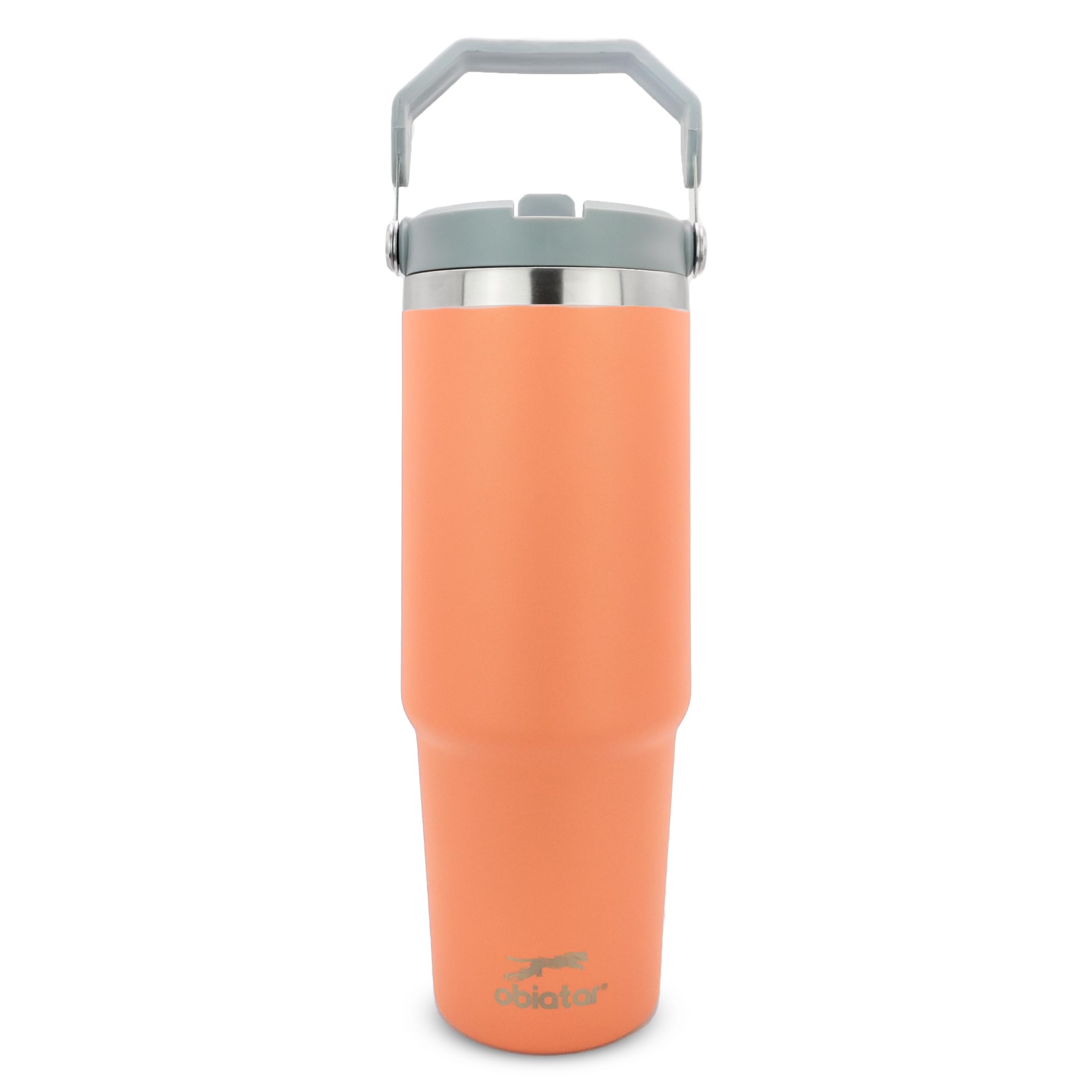 Obiatar 30 oz Tumbler with Handle | Insulated Tumbler with 100% Leak-Proof Lid and Straw | Stainless Steel Vacuum Water Bottle Travel Mug | Keeps Cold & Hot Drink (Orange)