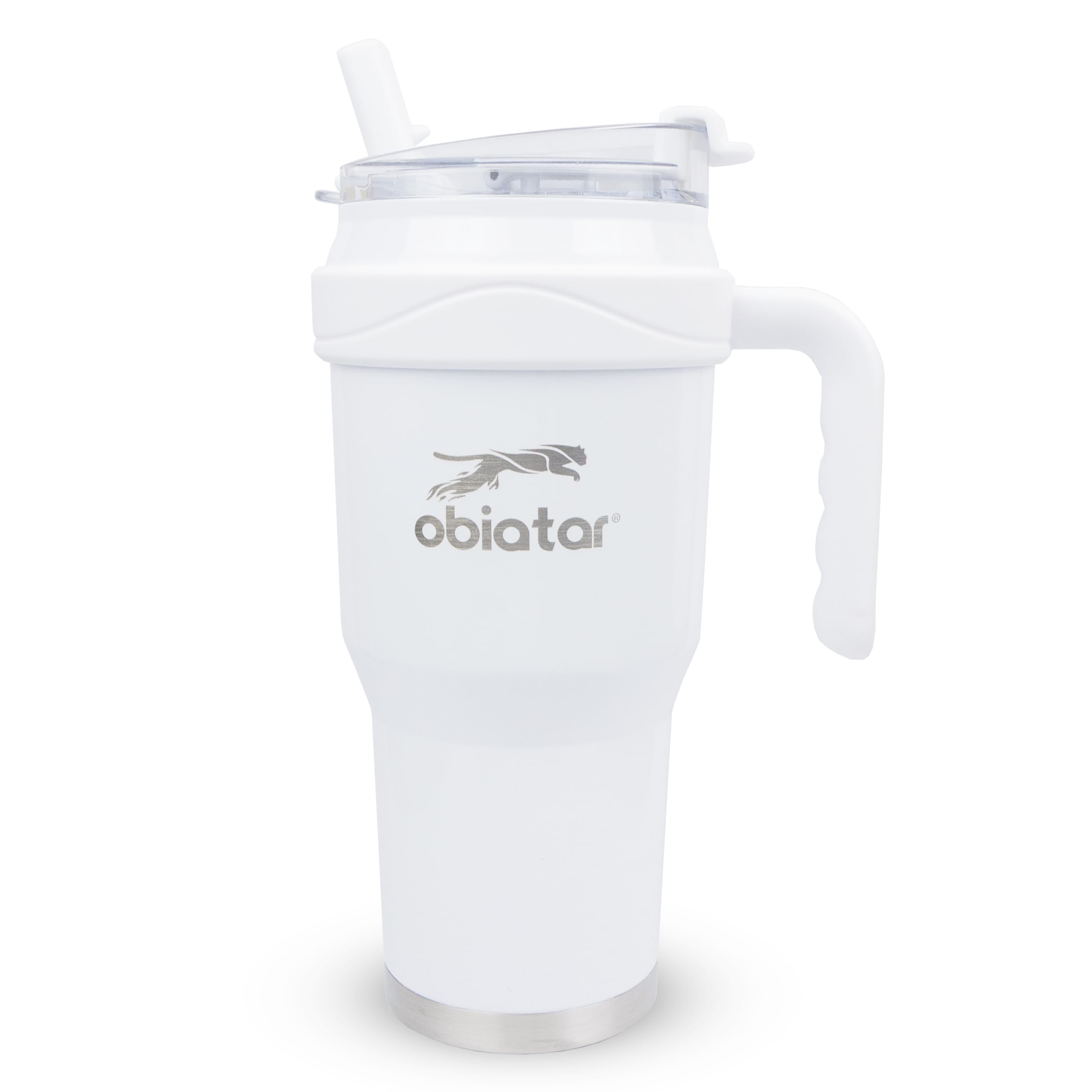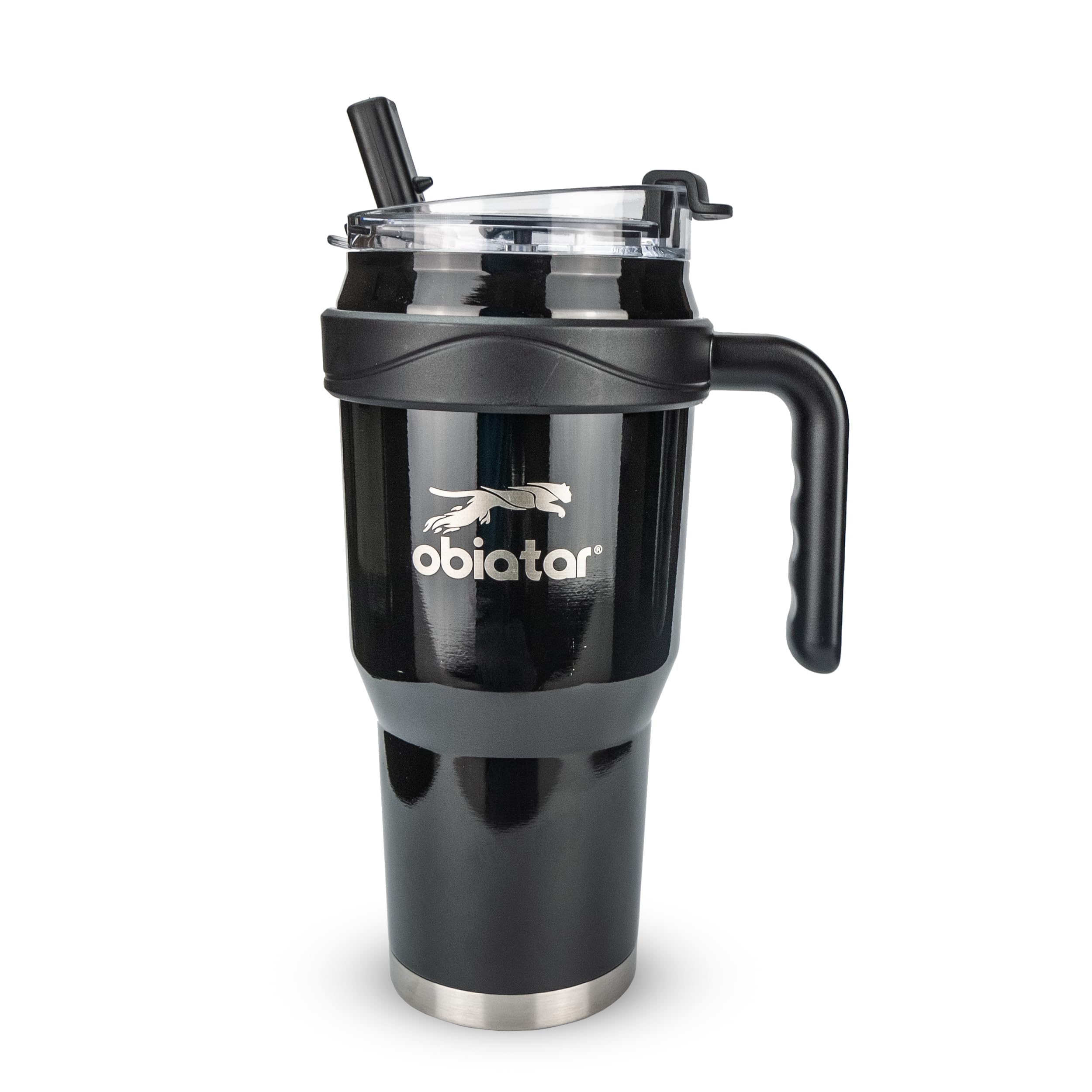 Obiatar 40oz Insulated Tumbler with Handle, Stainless Steel, Double Wall Vacuum Sealed, Leak-Proof Straw Lid