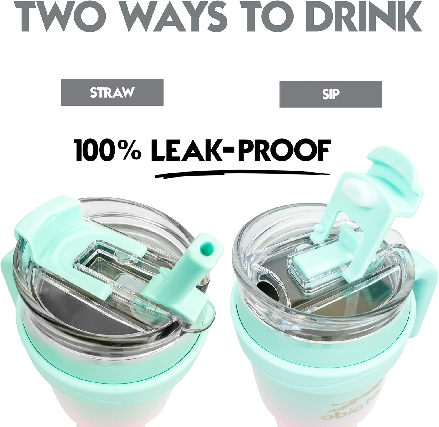 Obiatar 40oz Insulated Tumbler with Handle, Stainless Steel, Double Wall Vacuum Sealed, Leak-Proof Straw Lid (Pink/Green)